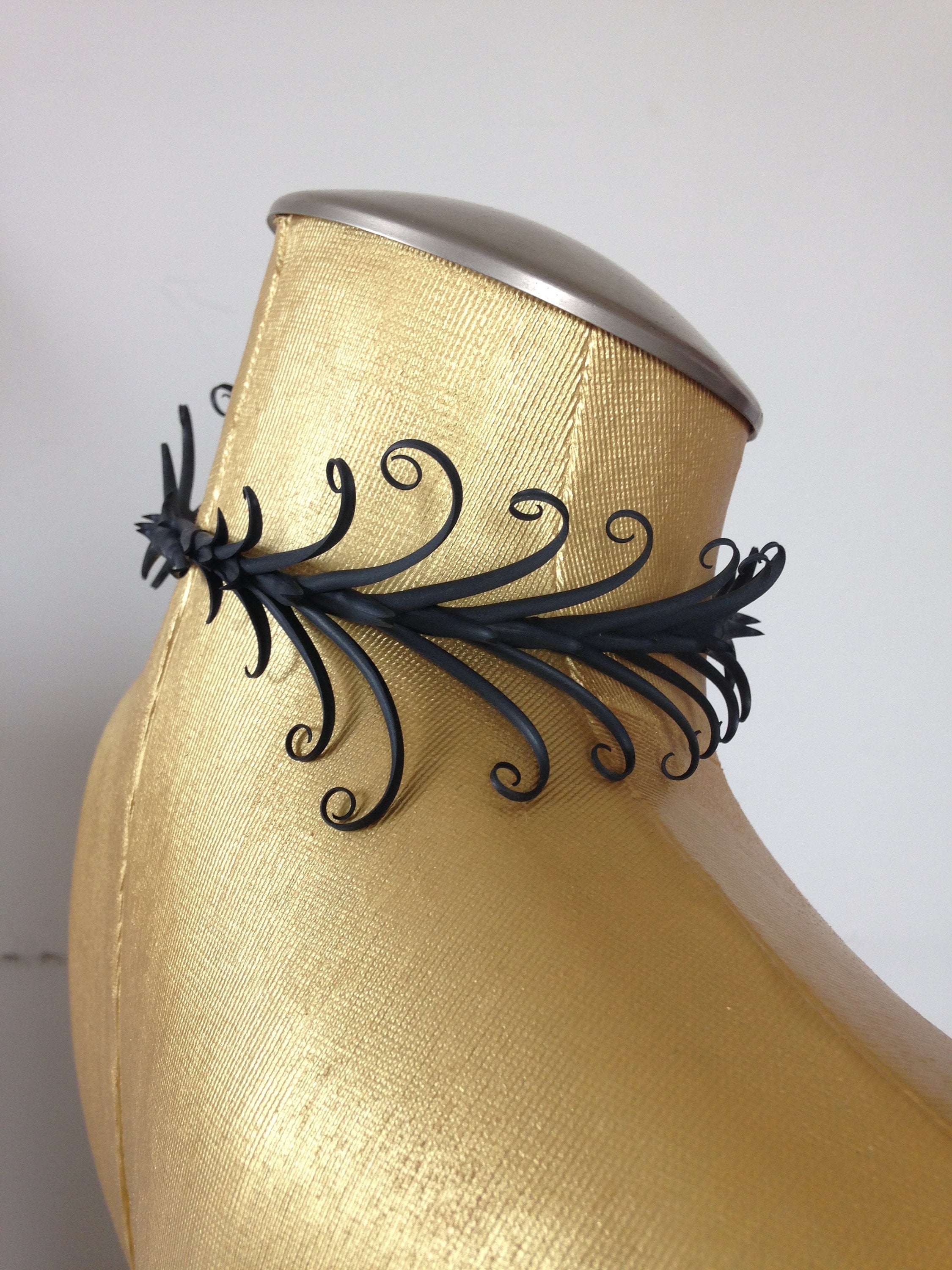 Zoa Chimerum soft, flexible hand cut sculpted rubber jewelry. Sculpted, soft synthetic rubber over a flexible steel core--this wrap around necklace is easy to wear, it is soft, flexible and claspless!